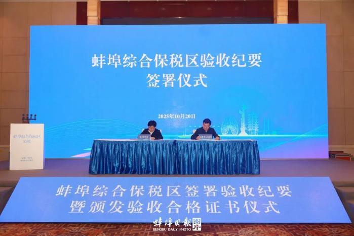 中新网安徽新闻10月21日电 (李扬 刘晨)10月20日,蚌埠综合保税区验收纪要签署暨证书颁发仪式举行,标志着蚌埠综保区顺利通过正式验收,正式具备封关运行条件。